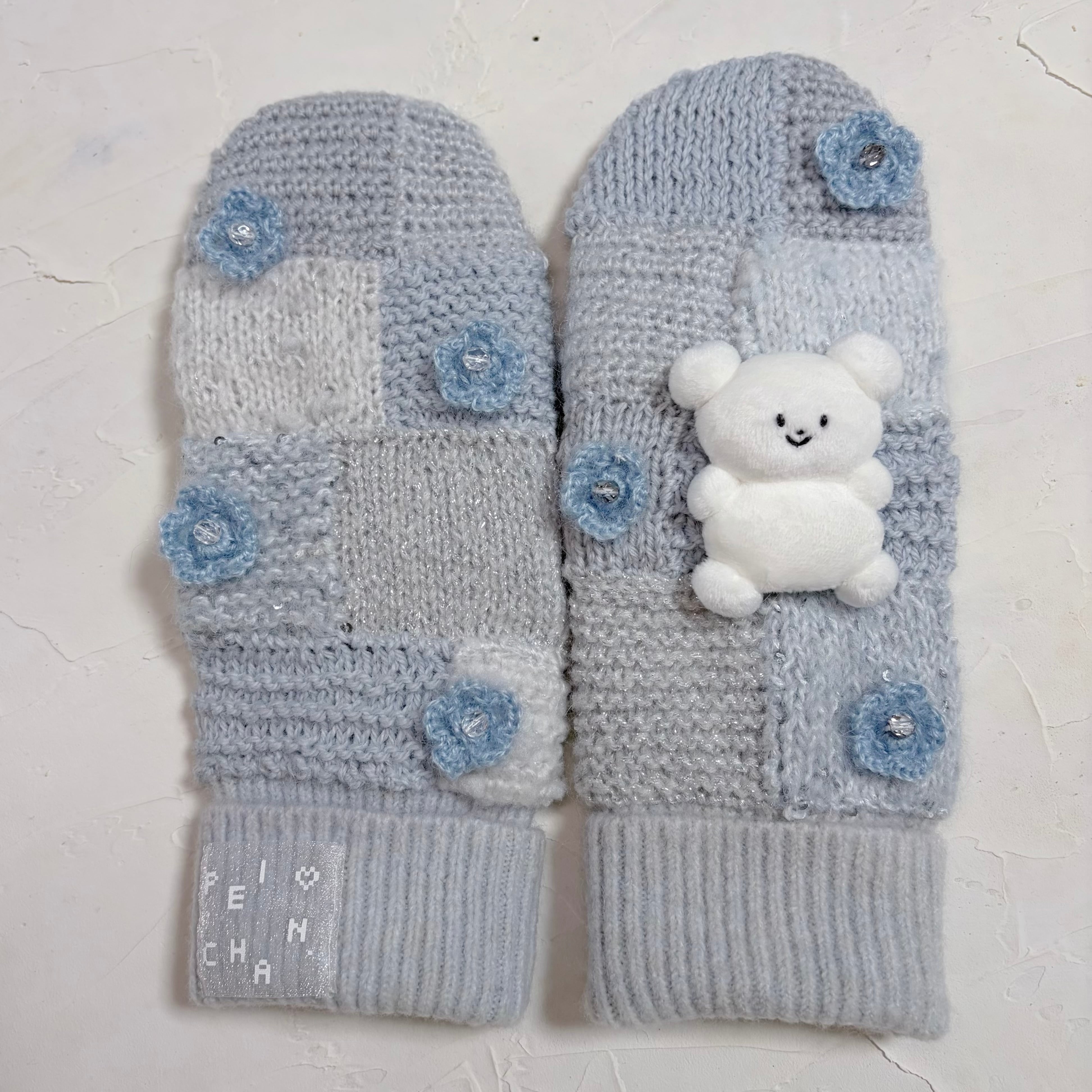 手編みのパッチワークが可愛い1点ものの手袋です。