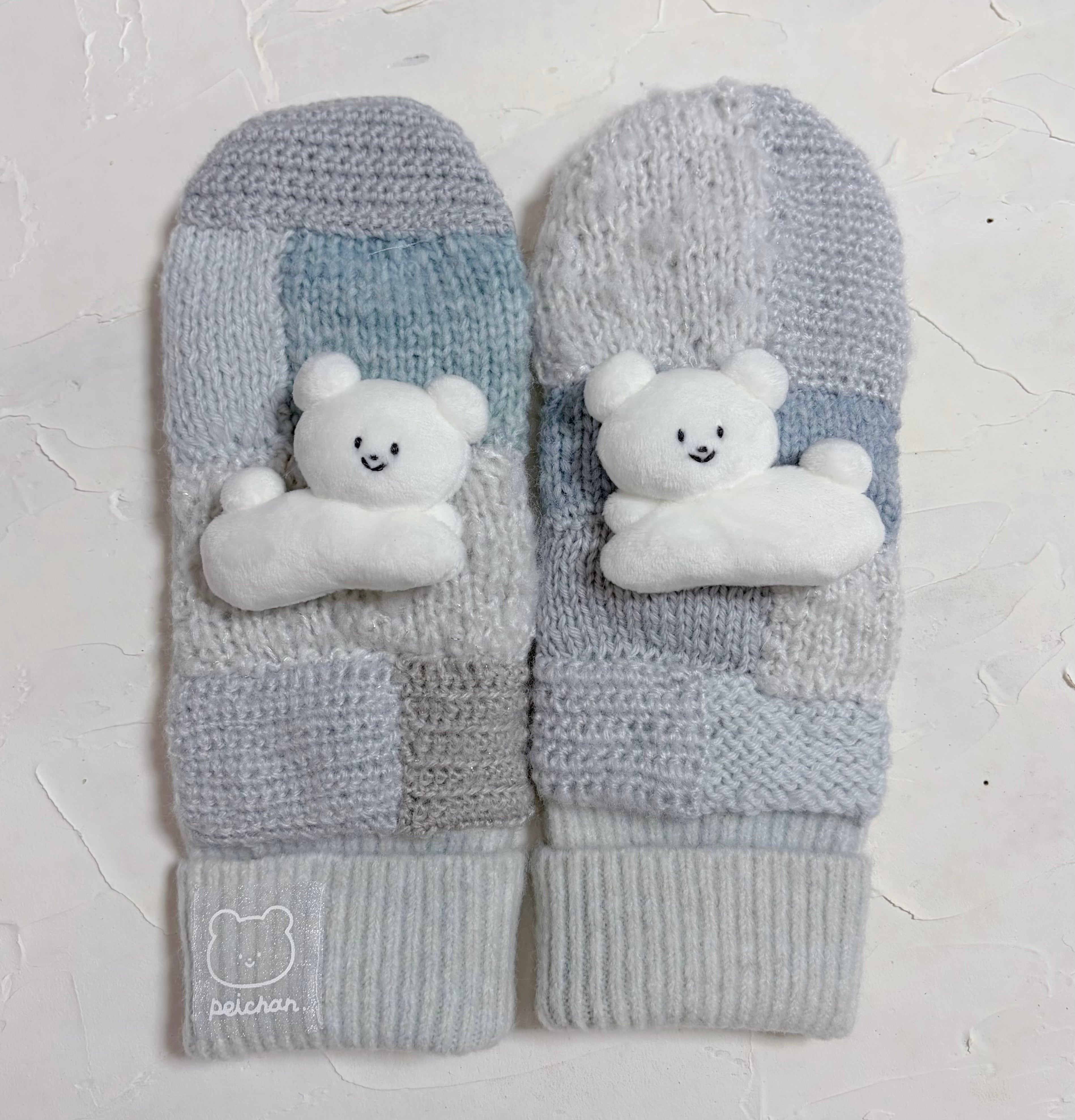 手編みのパッチワークが可愛い1点ものの手袋です。