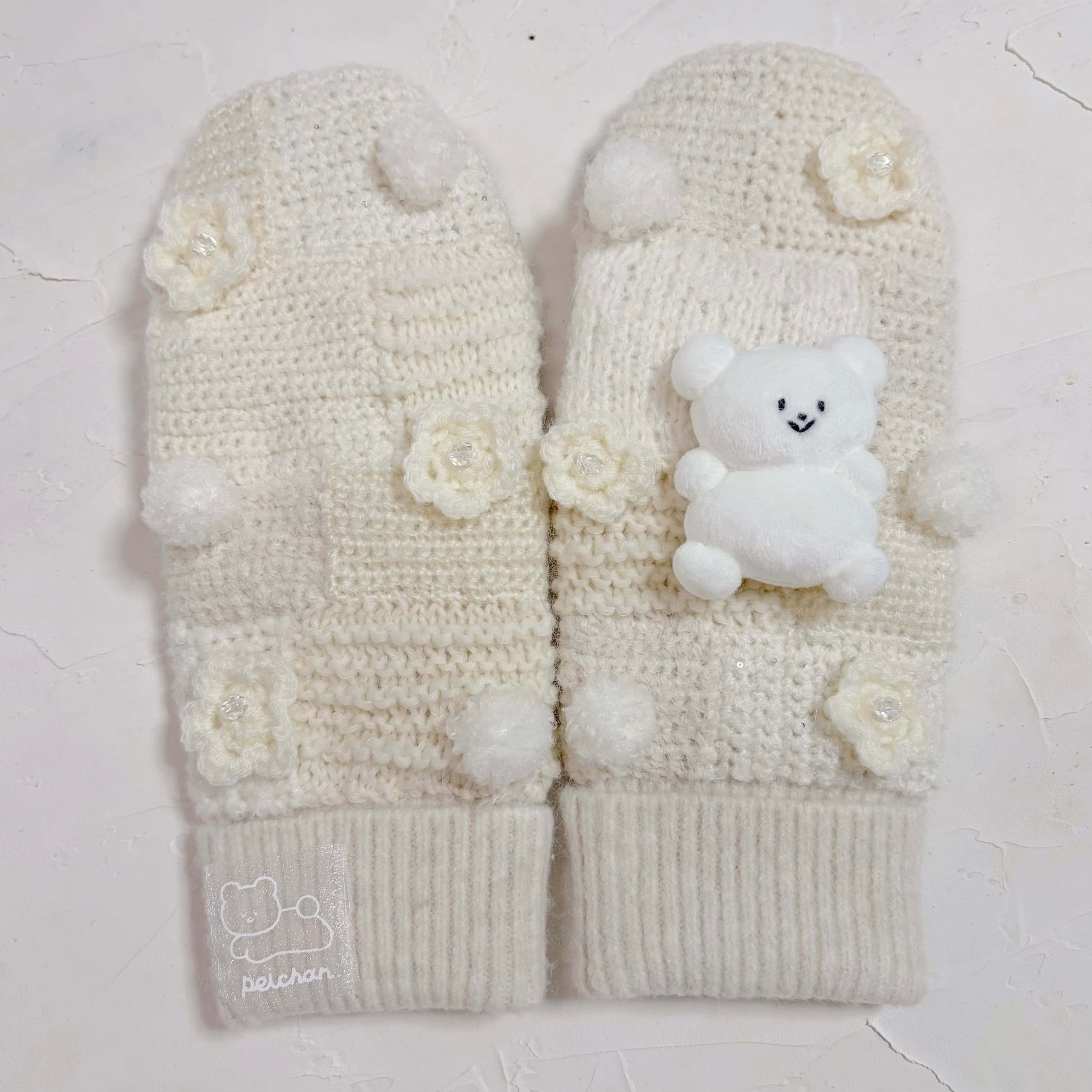 手編みのパッチワークが可愛い1点ものの手袋です。